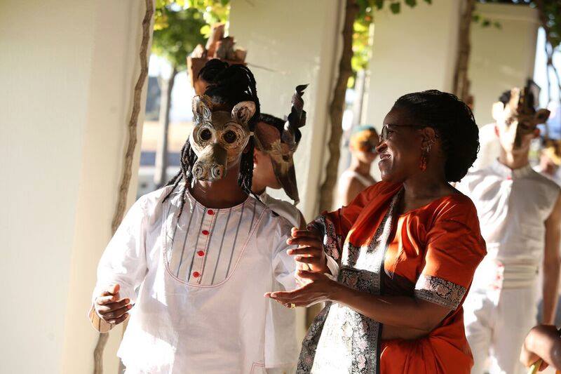 AIO: They saw a new version of THE AYE, choreographed by Sifiso Kweyama. The show was beyond delightful, not simply because of the magic that is dance, but because of the amazing people involved in the project. The performance was held in a beautiful vineyard estate with gardens and a wonderful decoration. Sifiso came up with an idea for performance art, the dancers were wearing our masks some of them are made with beautiful local feathers.