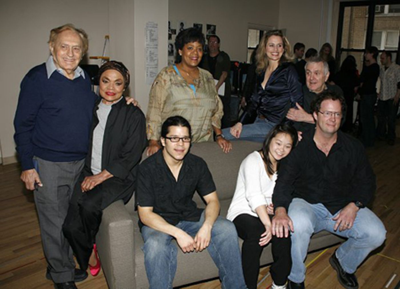(L to R) Joseph Stein, Eartha Kitt, Carlos Alban, Yvette Freeman, Samantha Futterman, Cady Huffman, Shuler Hensley and John Kander