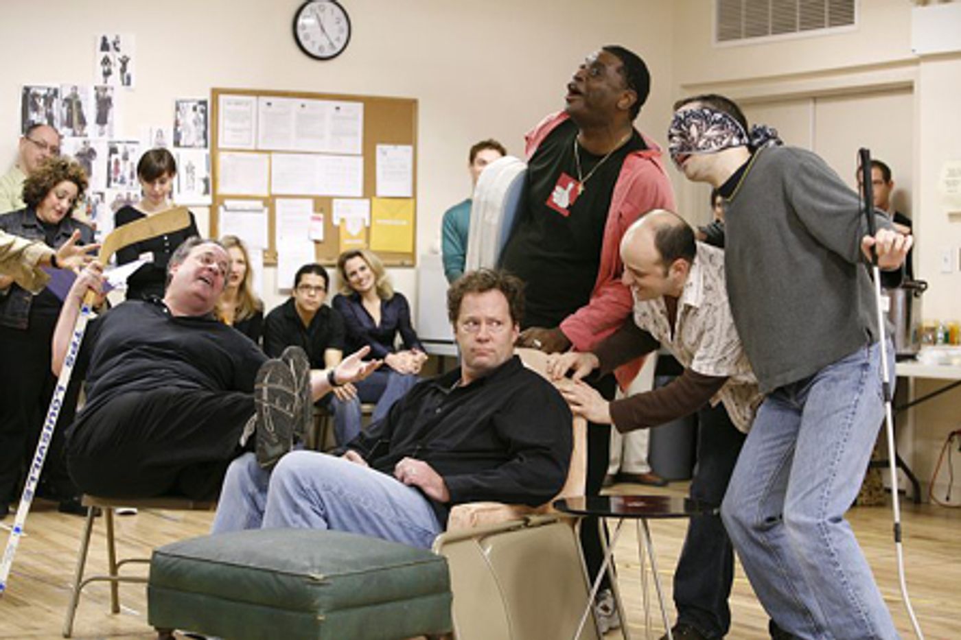 Shuler Hensley with Cady Huffman, Yvette Freeman, Samantha Futterman, David Standish, Carlo Alban and the cast