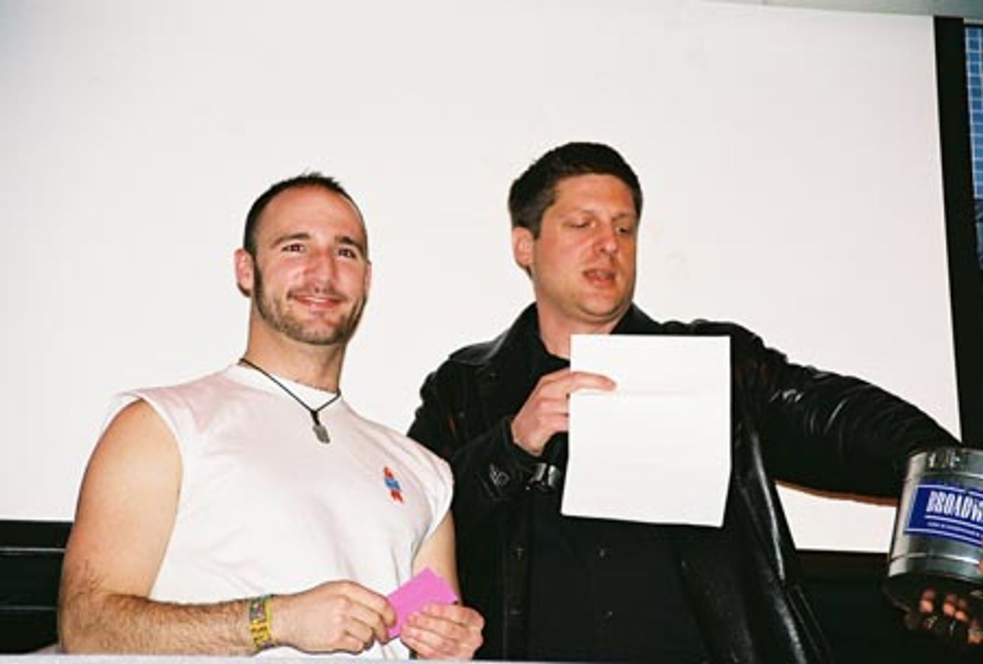 Jeff Lewis and Christopher Sieber reading off the raffle winners
