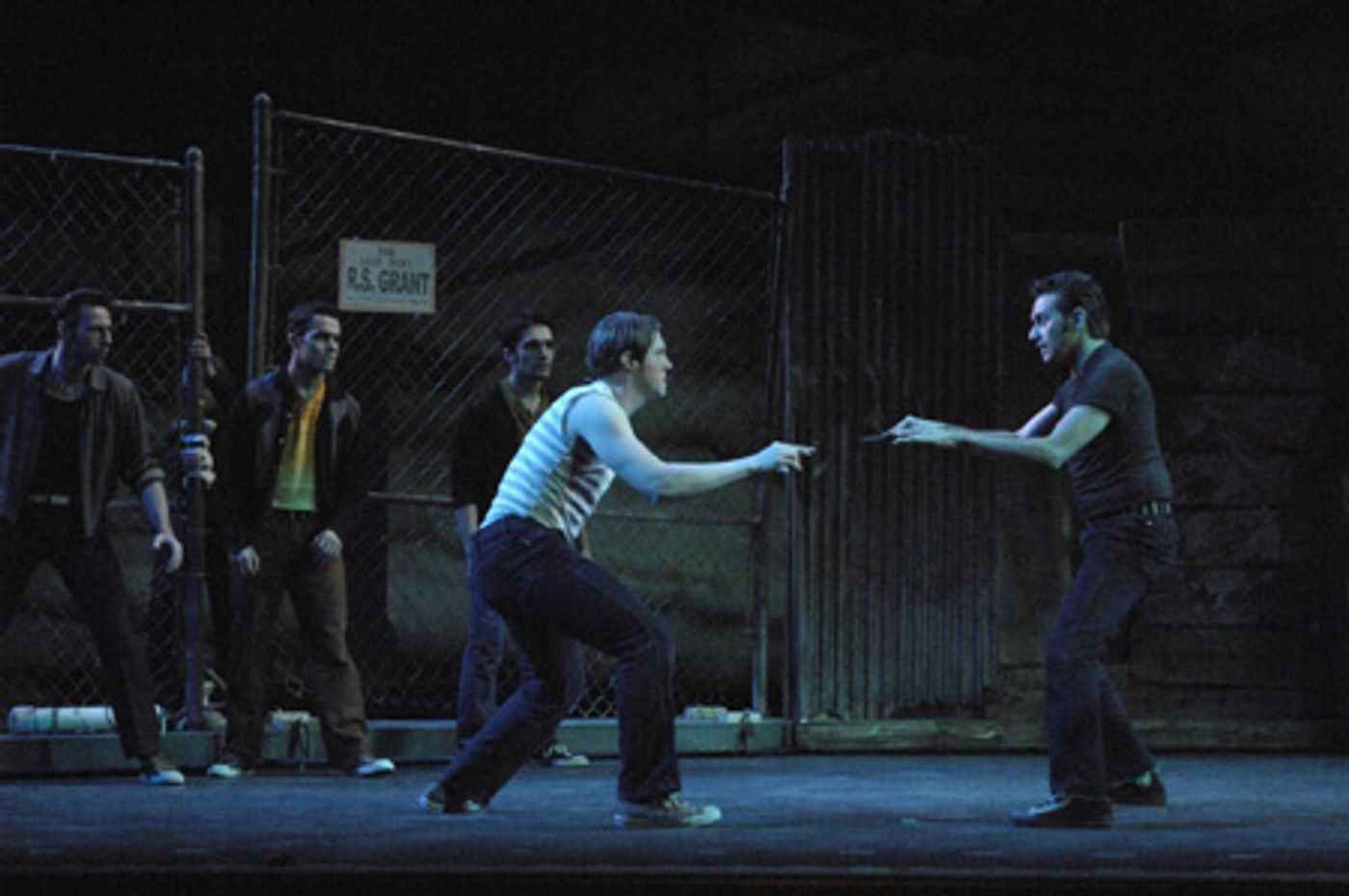 The Jets and the Sharks leaders take each other on in "the Rumble" - Justin Bohon and Freddy Ramirez