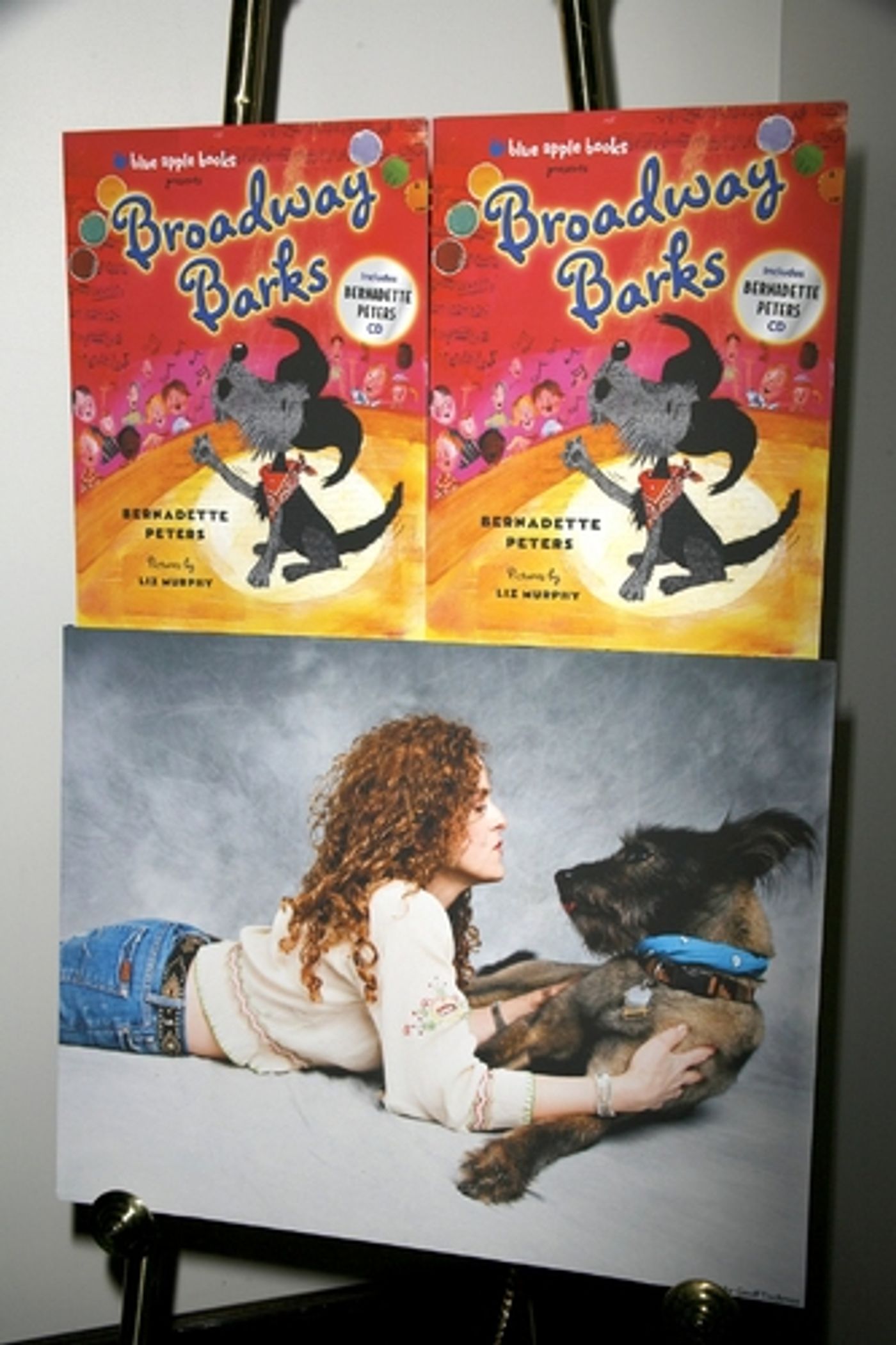 Bernadette Peters pictured with Kramer and 'Broadway Barks' Cover Art