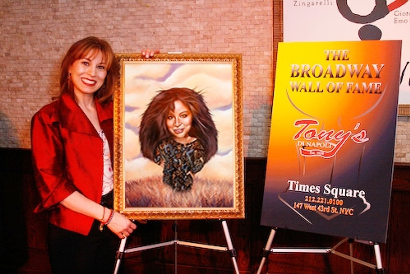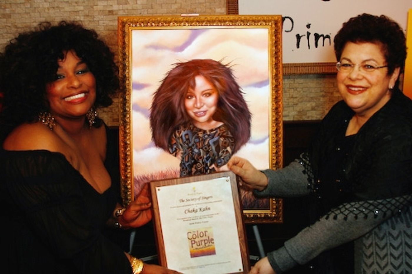 On Wednesday February 21, at theatre district hangout Tony's di Napoli, Tony's DiNapoli Times Square unveiled a portrait honoring the Chaka Khan from the musical The Color Purple; the picture, by acclaimed artist Dan May, welcomed to Tony's Wall of Fame. Radio personality Valerie Smaldone hosted the event. Tony's is the Times Square restaurant that has begun a tradition of having original oil painting portraits of performers hung all around the restaurant.