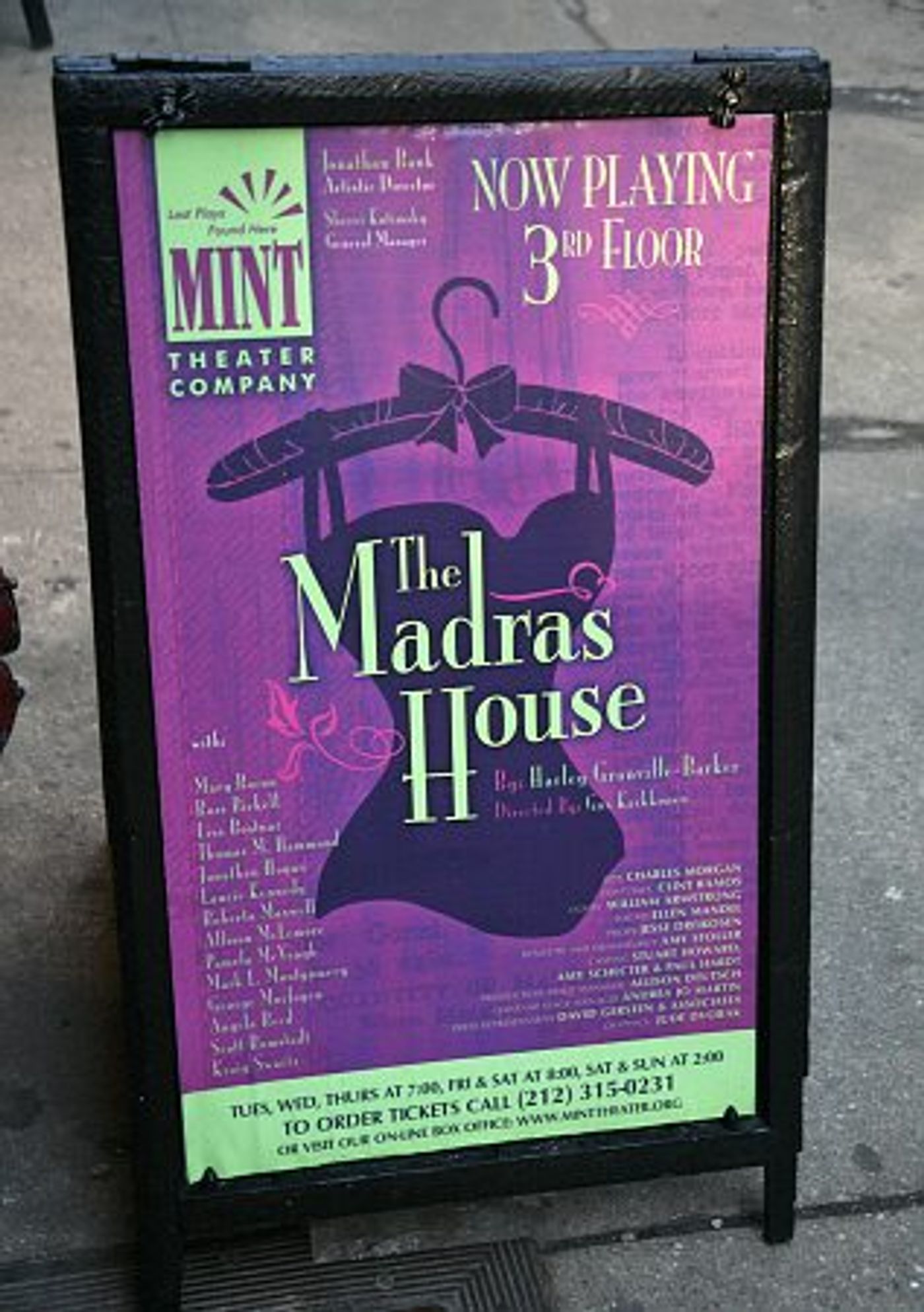 The Madras House, directed by Gus Kaikkonen, features Roberta Maxwell (Brokeback Mountain) and George Morfogen ("Oz") as Amelia and Constantine Madras, along with Tony Award nominees Laurie Kennedy (Tony-nominee, Man and Superman) and Jonathan Hogan (As Is). Also featured are Mary Bacon, Ross Bickell, Lisa Bostnar, Thomas M. Hammond, Jonathan Hogan, Laurie Kennedy, Roberta Maxwell, Allison McLemore, Pamela McVeagh, Mark L. Montgomery, George Morfogen, Angela Reed, Scott Romstadt, and Kraig Swartz.