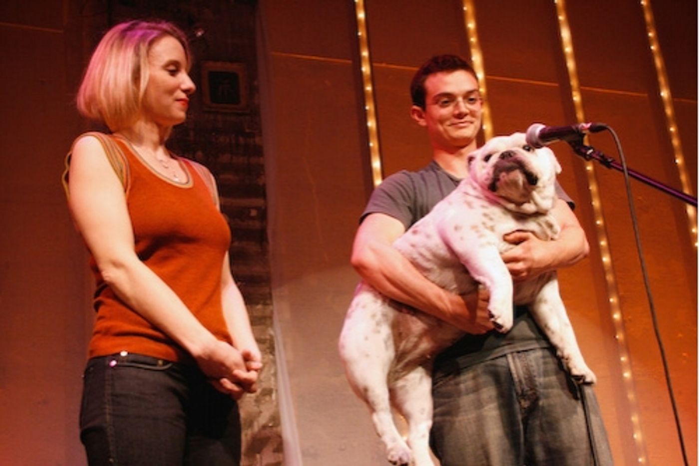 Sarah Saltzberg presents Pinta (held by Javier Picayo) with the Quitty Award for 'Best On-Stage Performance as an Animal'