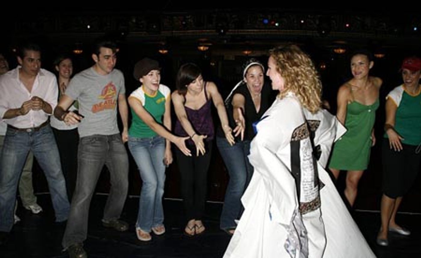 Amber Stone with Jenny Powers, Laura Osnes and cast members