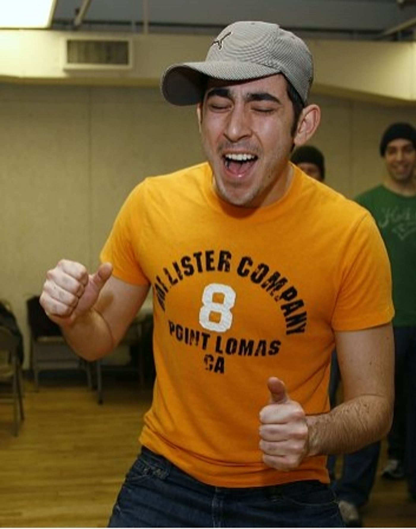 Max Crumm rehearses with the cast of Grease