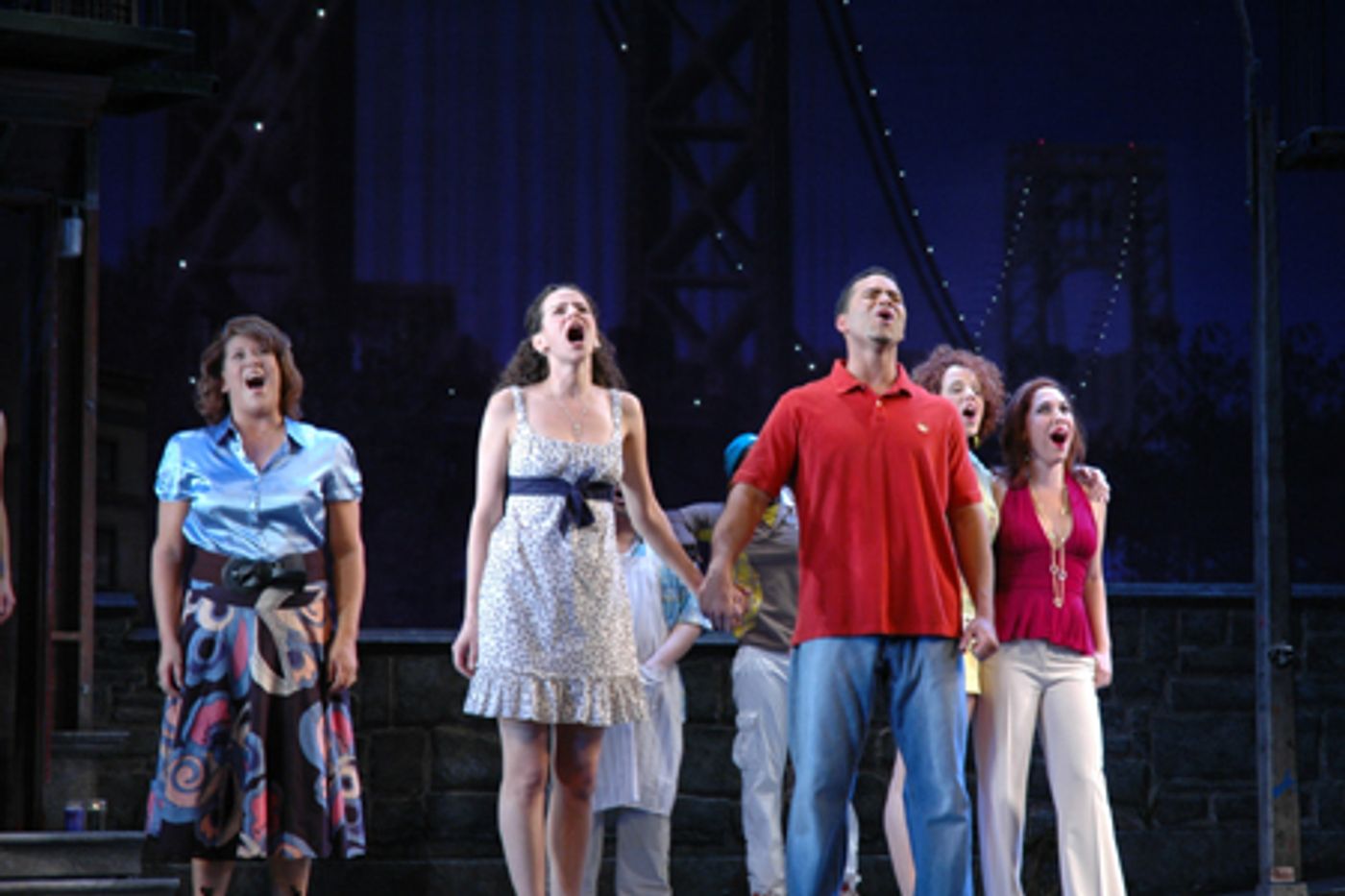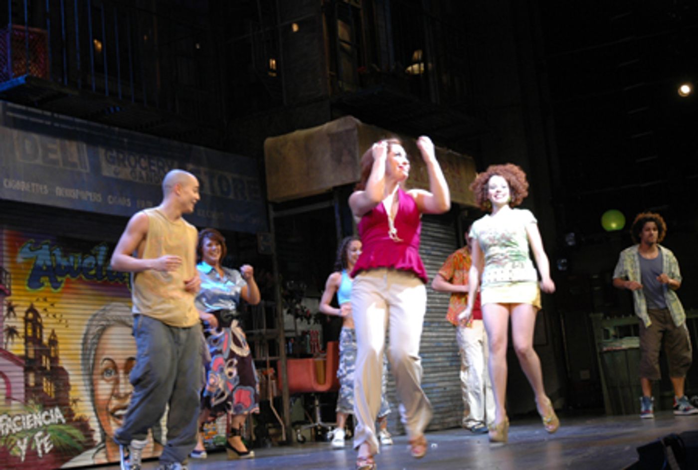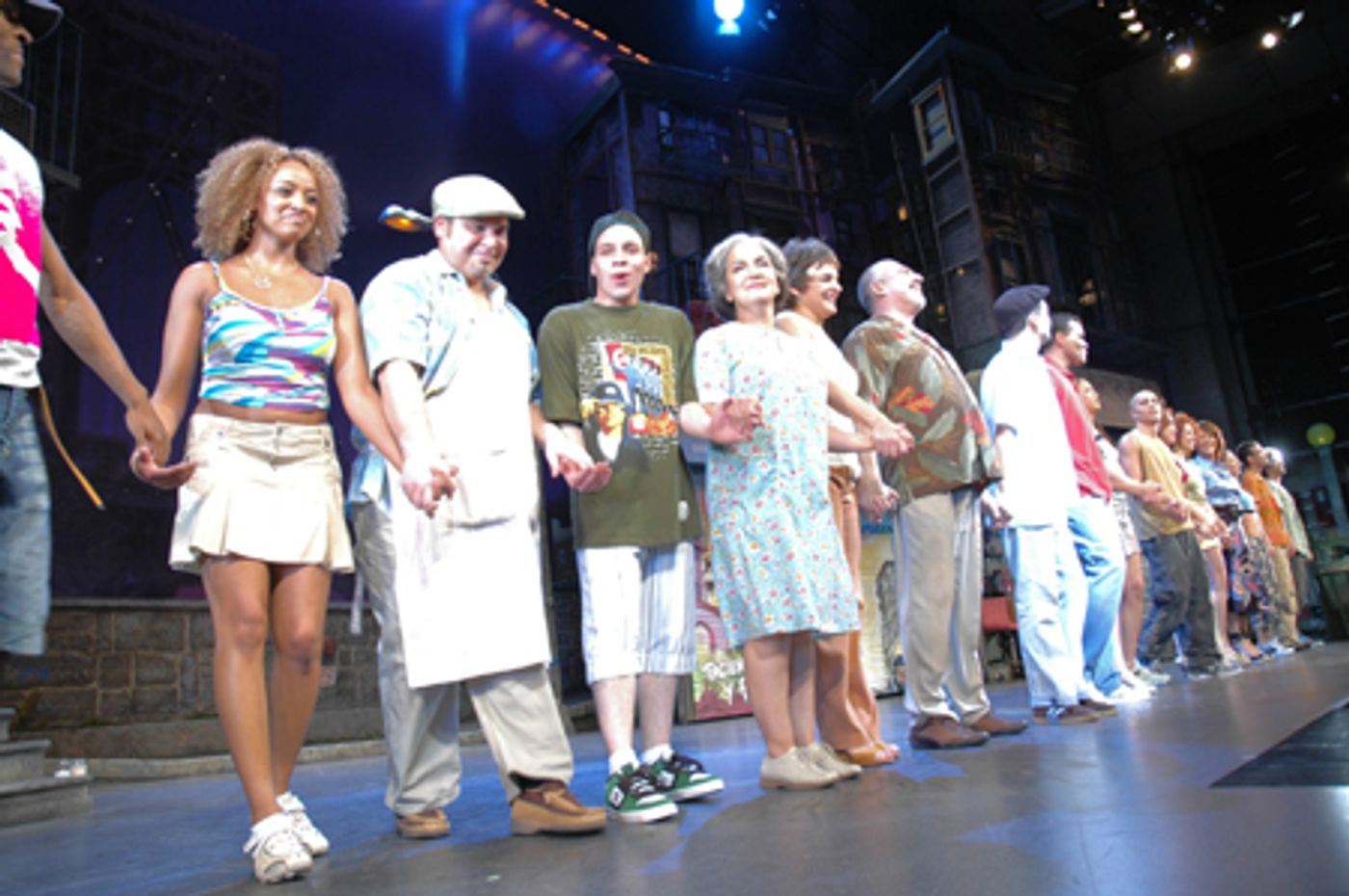 With music and lyrics by Lin-Manuel Miranda and a book by Quiara Alegria Hudes, In the Heights is directed by Thomas Kail and choreographed by Andy Blankenbuehler. The show is "a new musical about three days in the life of Washington Heights, a vibrant and tight-knit community at the top of the island of Manhattan. It's a place where the coffee from the corner bodega is light and sweet, the windows are always open, and the breeze carries the rhythm of three generations of music. In the Heights is the tale of a community at a crossroads. Find out what it takes to make a living, what it costs to have a dream, and what it means to be home In the Heights," according to press materials.The musical stars Andrea Burns, Janet Dacal, Mandy Gonzalez, John Herrera, Christopher Jackson, Robin de Jesus, Priscilla Lopez, Olga Merediz, Lin-Manuel Miranda, and Karen Olivo in a cast of 22.