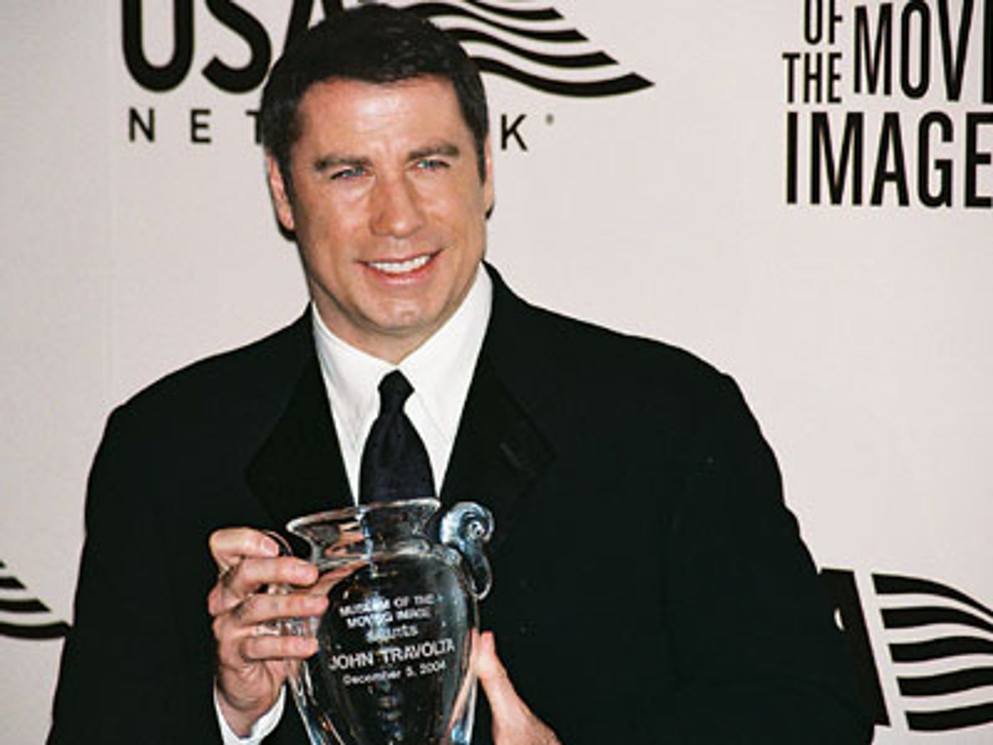 John Travolta was the 20th honoree saluted by the Museum of the Moving Image at its annual black-tie gala, held this year on Sunday, December 5, 2004, in the Grand Ballroom of the Waldorf-Astoria Hotel in New York City. For the second year, USA Network will tape the festivities for airing On Sunday, December 12th.  For further information regarding the Museum of the Moving Image, www.movingimage.us
