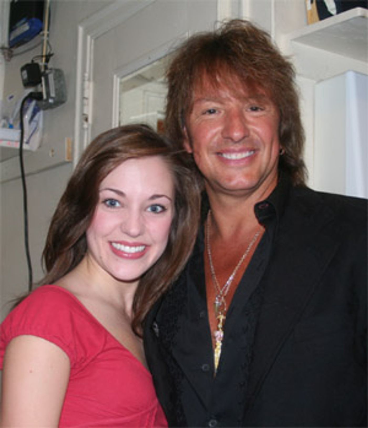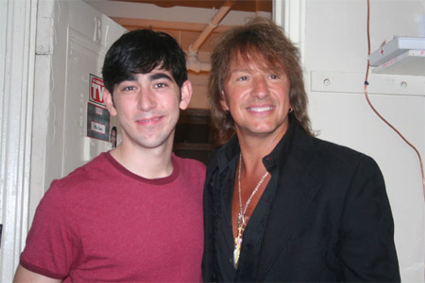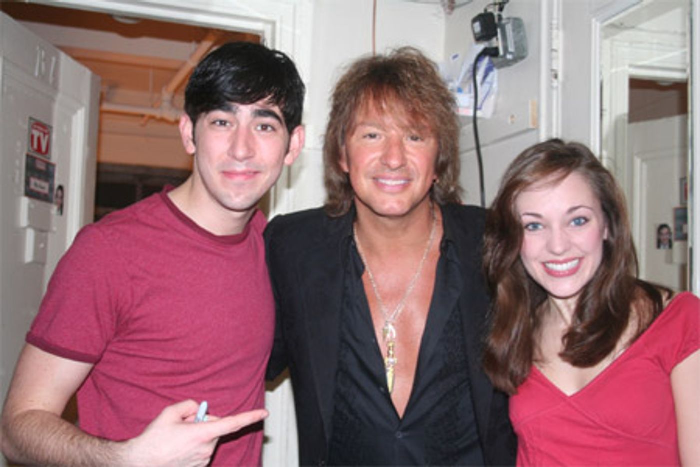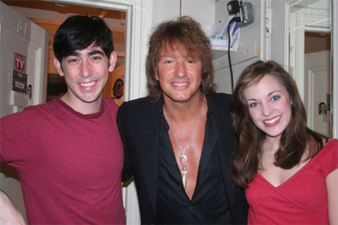 On August 25, American guitarist, singer and songwriter Richie Sambora visited Max Crumm and Laura Osnes backstage after the evening performance of Grease at the Brooks Atkinson Theatre.