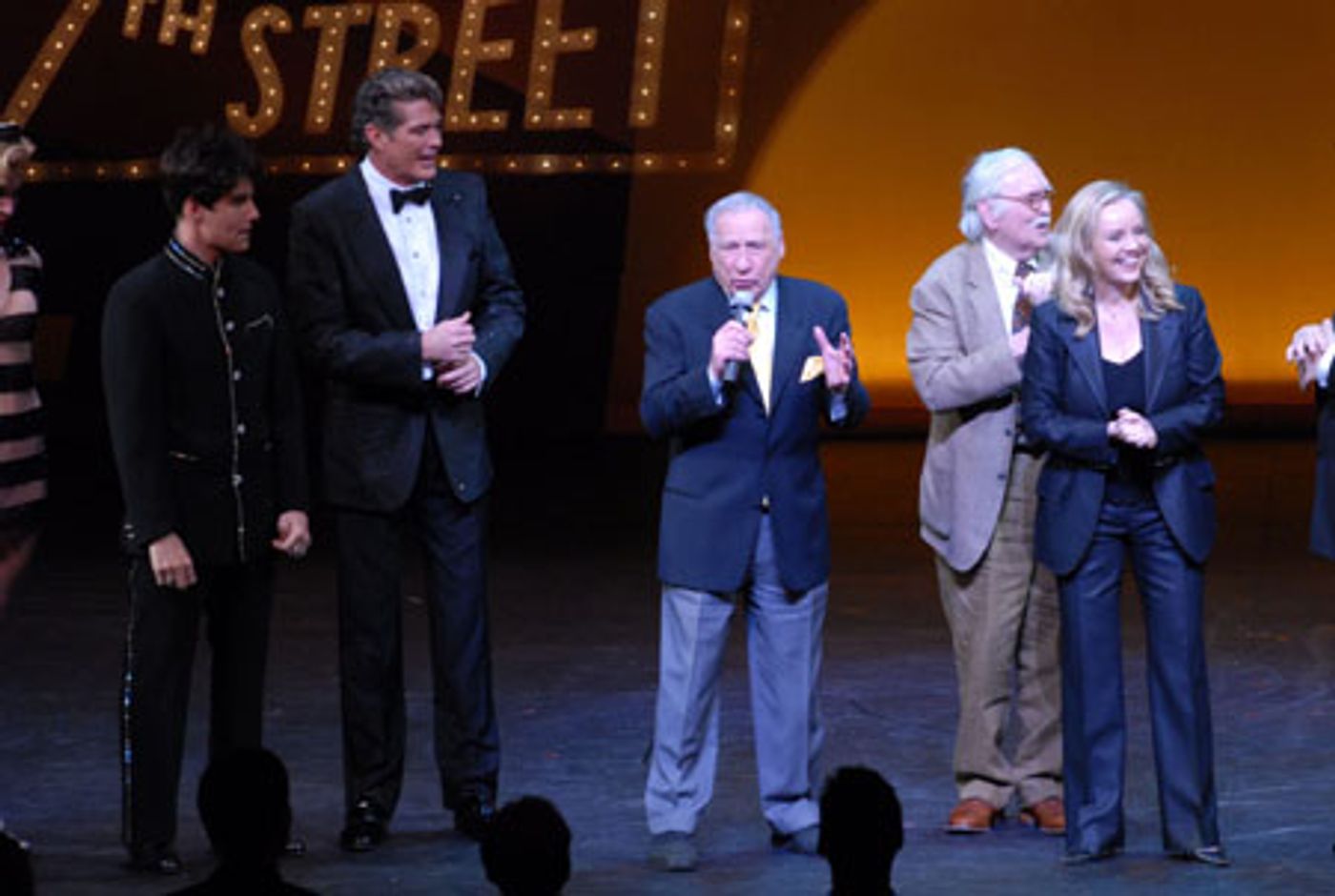Rich Affannato, David Hasselhoff, Mel Brooks, Thomas Meehan and Susan Stroman at curtain call
