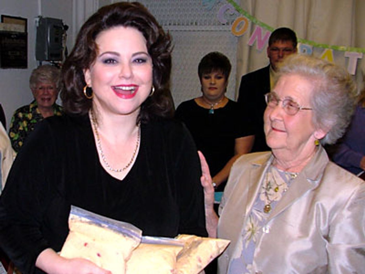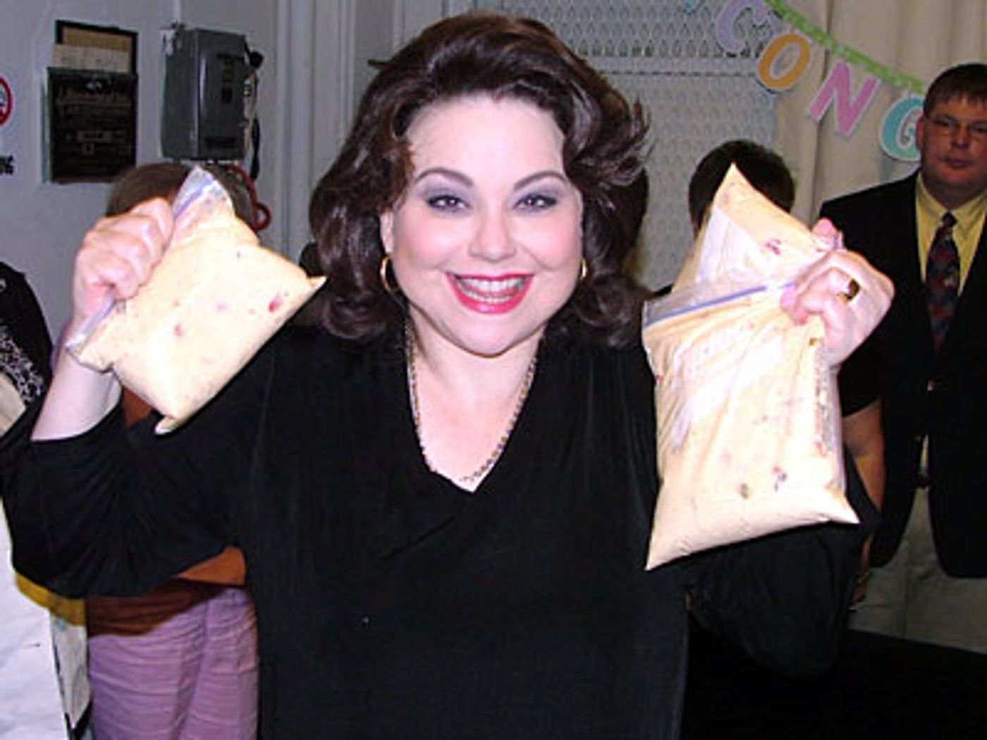 On Saturday night July 9th, 11 people from Collins, Mississippi were in the audience to see Steel Magnolias. Among them was Delta Burke's husband's (Gerald McRaney) Aunt Ruth. Gerald and Delta visit Collins often and even have their own furniture store there, called Gerald and Delta's Imports "The Best Little Warehouse in Mississippi." After the performance, Aunt Ruth and her friends presented Delta with a cooler of Ruth's famous Chicken Spaghetti.