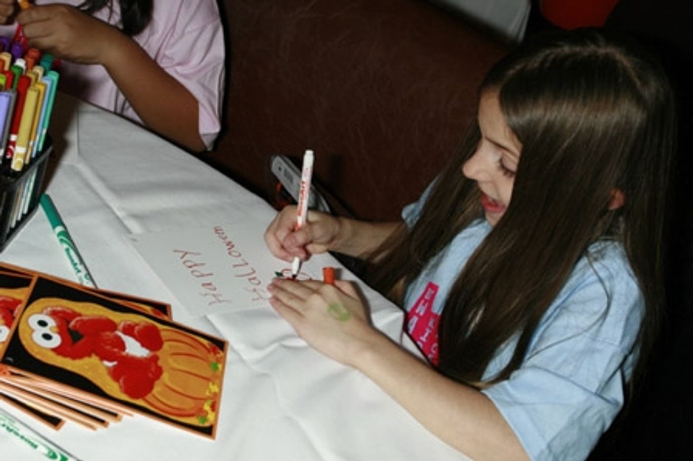 Broadway Kids Care (BKC), the new organization of theater kids for kids (and others), hosted its first Halloween festival this past Saturday afternoon, October 20 (5-7PM). Kids from such Broadway shows as Mary Poppins, Les Miserables, Grey Gardens, The Little Mermaid, Chitty Chitty Bang Bang converged on Spanky's BBQ (the unofficial headquarters for BKC events) between matinee and evening performances for dinner and to assemble Halloween pails for the children of Freedom House NYC and its adjacent facility, Secret Garden.