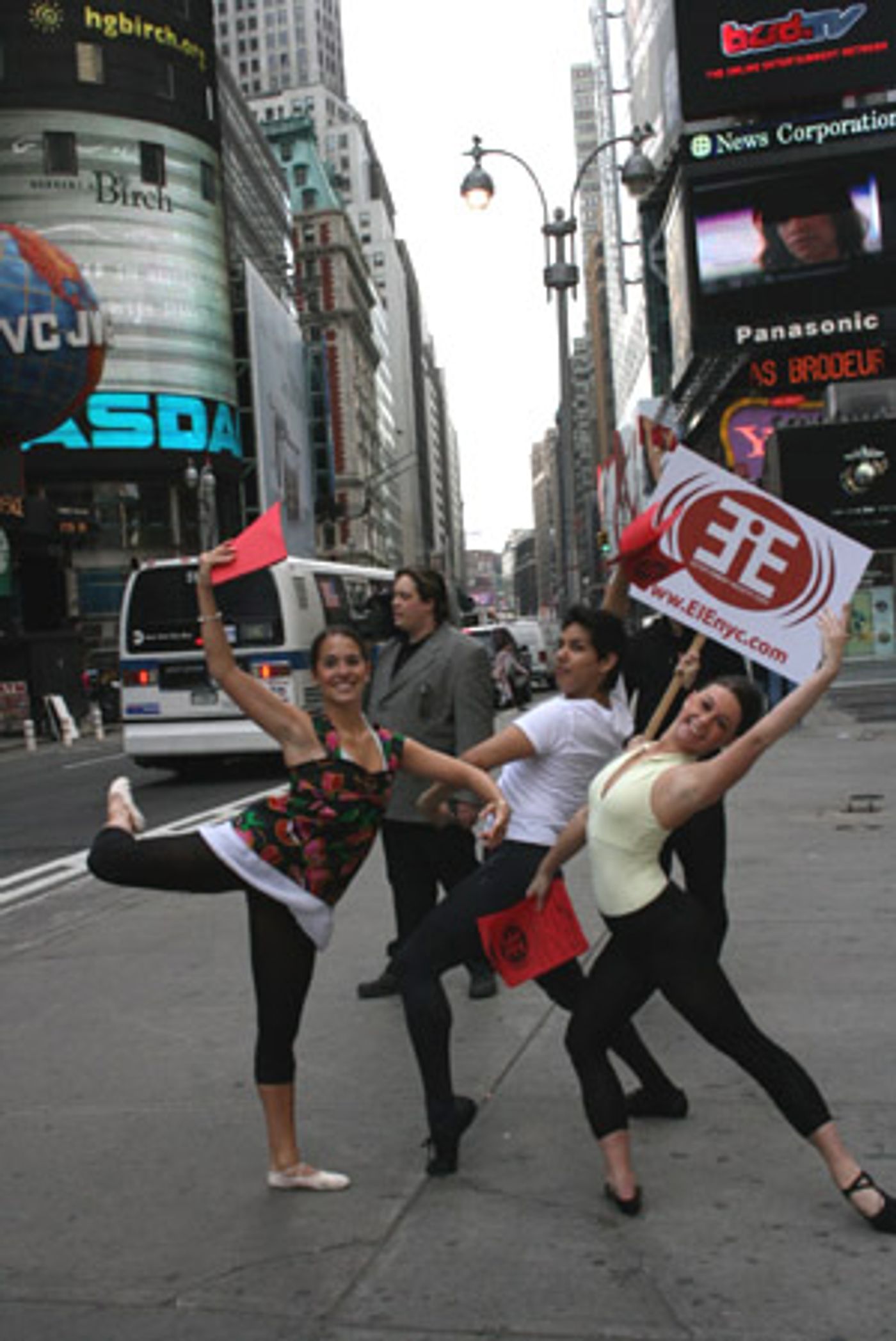 New York City's actors, dancers, producers, cameramen recently took to Times Square to promote the upcoming Entertainment Industry Expo, which will be held on June 3rd, from 10 AM to 6 PM, at the Westin Hotel (270 W. 43rd St.). A 2(x)ist Networking Cocktail Reception will follow the Expo from 7 to 9 PM. Attendance is free.