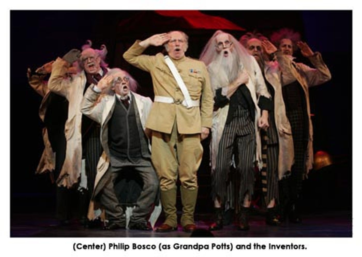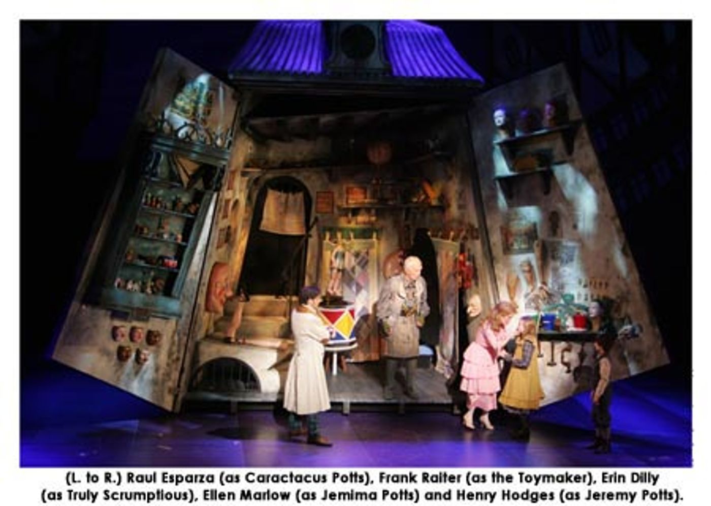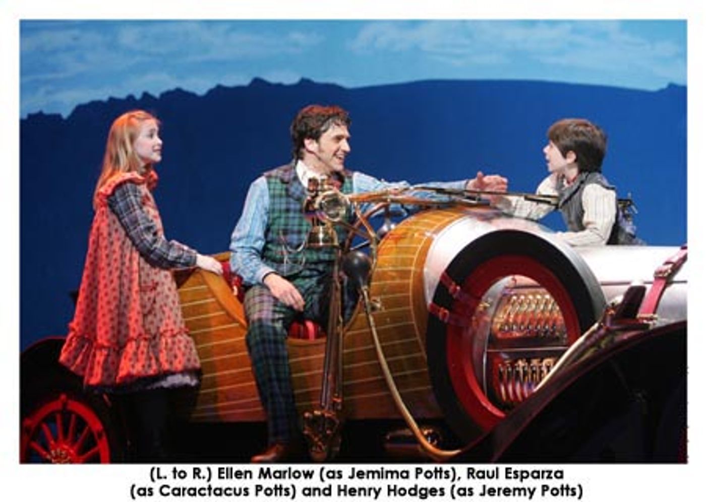 The cast of fifty in CHITTY CHITTY BANG BANG is led by Raúl Esparza as Caractacus Potts, Erin Dilly as Truly Scrumptious, Philip Bosco as Grandpa Potts, Marc Kudisch as Baron Bomburst, Jan Maxwell as Baroness Bomburst, Chip Zien as Goran, Robert Sella as Boris, Kevin Cahoon as the Childcatcher, Frank Raiter as the Toymaker and the children, Henry Hodges as Jeremy and Ellen Marlow as Jemima.