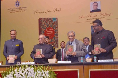 'The Future of Indian Universities: Comparative and International Perspectives', a book edited by Professor (Dr) C. Raj Kumar, Founding Vice-Chancellor O. P. Jindal Global University (JGU), Delhi, NCR, India, was released by Nobel Laureate Amartya Sen at Rashtrapati Bhavan on 17th July 2017. President Pranab Mukherjee was presented with the first copy of the book which has been published by Oxford University Press India.