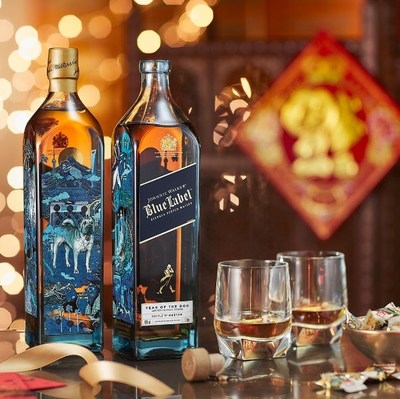 Page Tsou, award winning artist said, "It is an honour to have been commissioned to create the Johnnie Walker Blue Label Year of the Dog bottle. The precious design consists of a total of four dogs all chosen for their special meaning in Asia. This unique design tells the story of Johnnie Walker's Striding Man and a loyal companion as they journey around the world bringing prosperity and rejoicing in the arrival of the New Year. The design also contains various symbols of wealth and prosperity making this bottle extremely unique and the perfect gift to give this Chinese New Year."