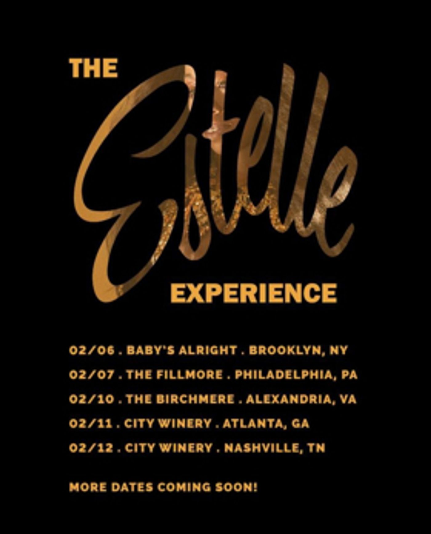"I want fans to feel close to me and experience a great show from beginning to end, said Estelle. "When I give my fans this show, I want them to walk away feeling like they not only experienced a great concert but to give people the story of my parents, Mike & Deen and a personal look into the story of who I am."