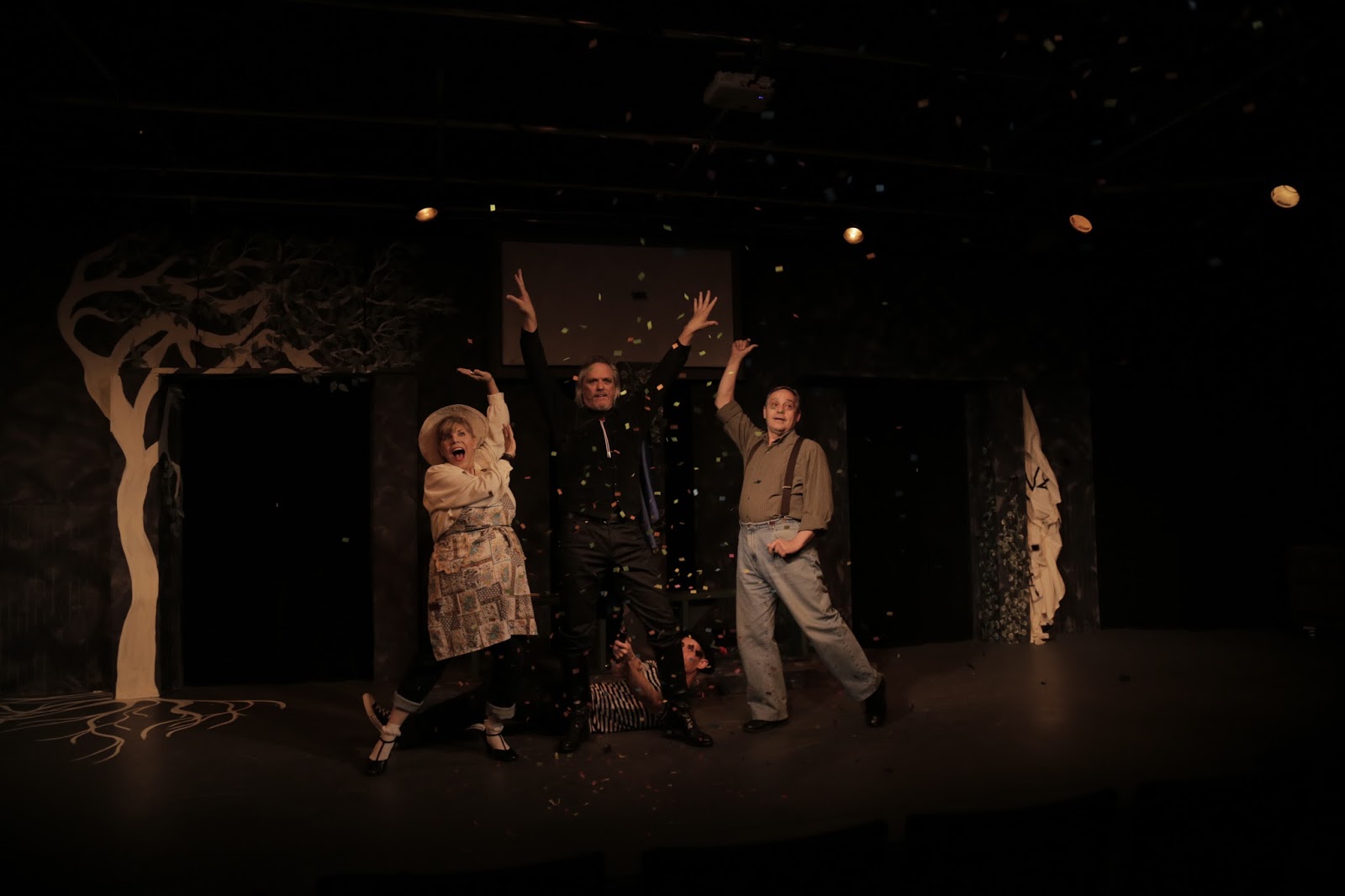 The cast work very well together. Hansen is strong, dashing and wonderfully sly and mischievous as El Gallo. Gabrielle as Luisa adds sweetness and lust for adventure to her character, as well as a lovely lilting soprano voice. Marchak as Matt should be slightly less exuberant, letting his masculine urges come from the inside. As is, he is a bit overly enthusiastic and needs to pull in somewhat. Stanley is delightful as Bella, Luisa's mother, with big broad comedic strokes and a wonderfully theatrical singing voice. Clark as Hucklebee is more straight forward in his approach. Hoffman does his best with the Old Actor Henry, fumbling and fowling up the act, with the younger York right behind him, enjoying every grimace and pratfall. Conley is just terrific as the Mute, as he doesn't miss a move, sprinkling snow or stardust, even from the ledge behind the lovers.