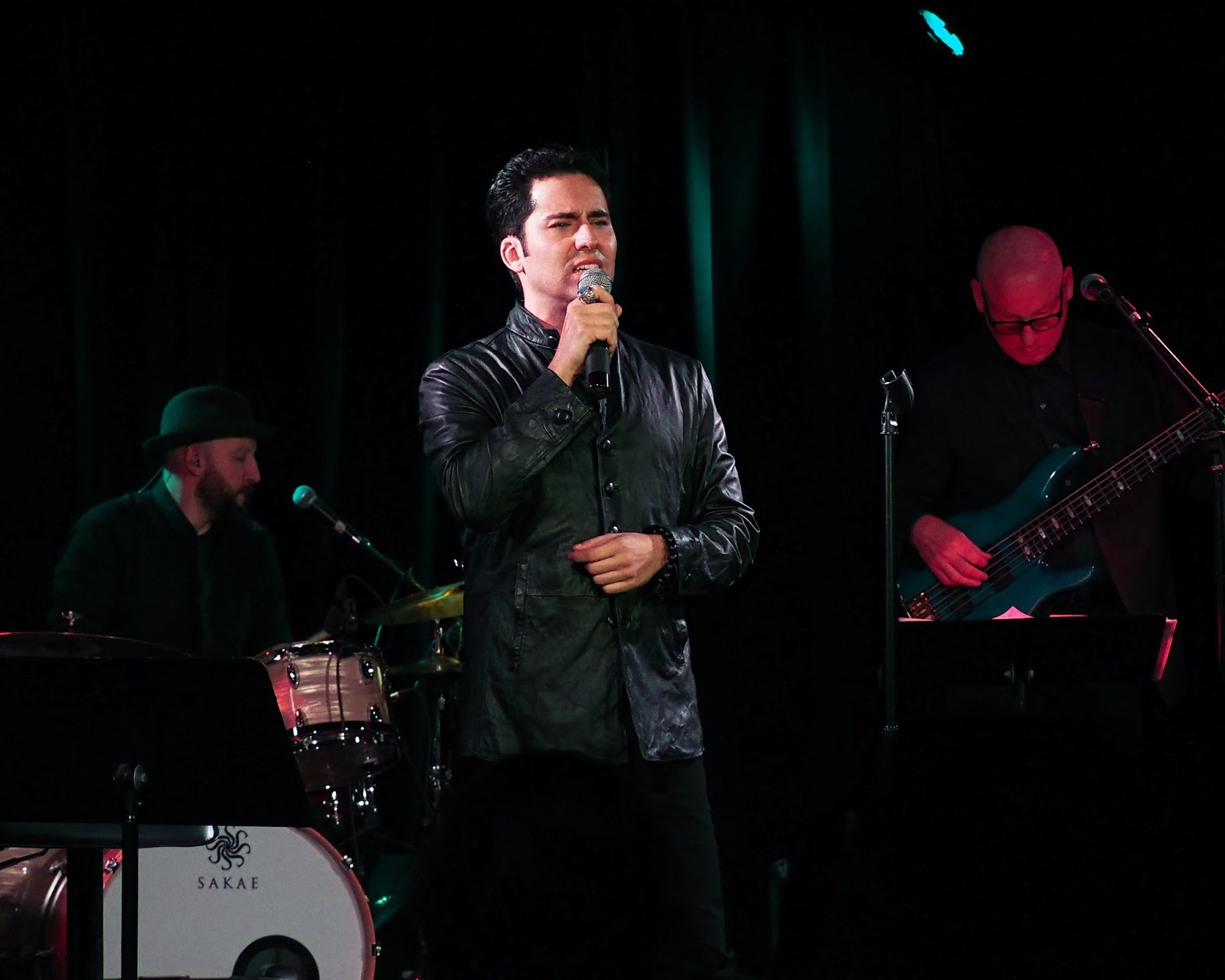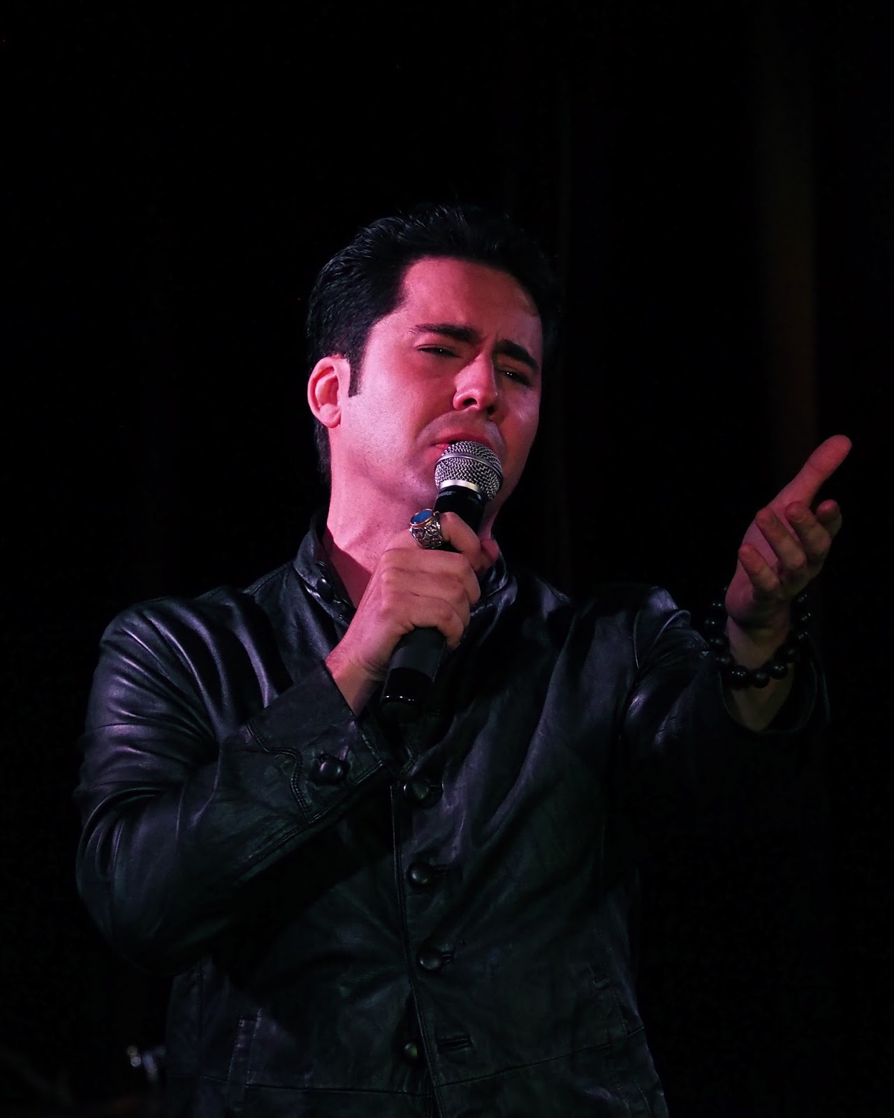 He made almost immediate contact with his audience toward the beginning with "In the Still of the Night" by traveling through the house from front to back, taking the ladies' hands, shaking hands with the gentlemen and sitting on a couple of laps to croon. Nice personal touch! On the flip side he later put on a pair of shades "for privacy" and wore them through a couple of numbers. I like a fun and self-deprecating sense of humor!