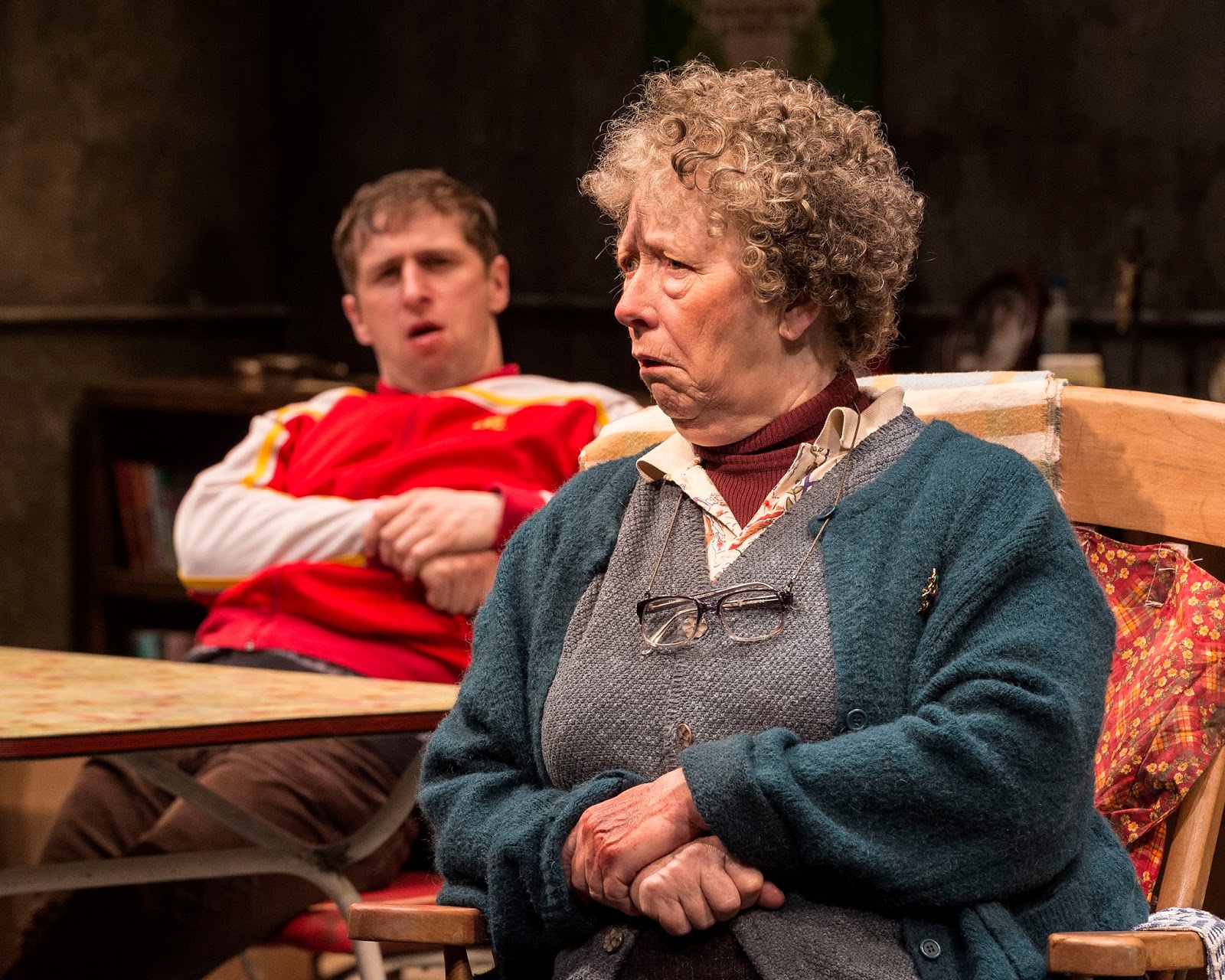 For the most part, brilliantly written classic plays make their locale the main character of the piece. Think of Tennessee Williams. All of his plays take place in the American South; poverty-stricken New Orleans sets the background for Streetcar among other plays. In Martin McDonagh's The Beauty Queen of Leenane, the small town of Leenane in Connemara, County Galway, Ireland not only displays the frequent rainy, dismal atmosphere for Mag Folan (Marie Mullen) and daughter Maureen (Aisling O'Sullivan), but it sets the lugubrious tone of isolation that cripples and destroys them. Now on the Taper stage through December 18 the Druid Company of Galway who originated the play in 1996, which went on to win four Tonys on Broadway in 1998, presents a stark portrait that lingers in the mind long after one leaves the theatre.