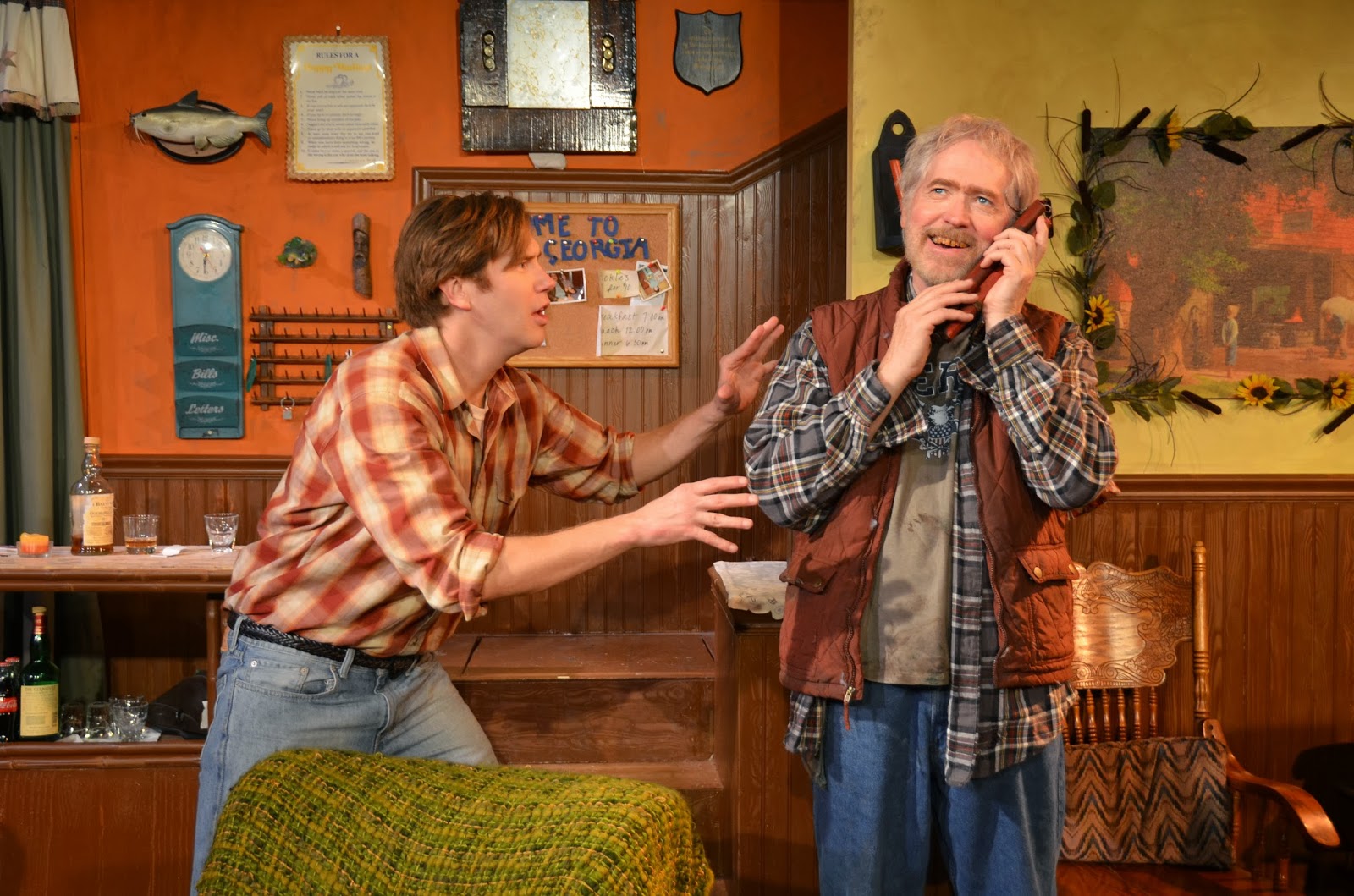 Under Joanne McGee's loving and super skilled hand - she also designed the dingy yet homey lodge set, The Foreigner turns into a terribly funny play that really displays Shue's meticulous imaginative powers. His playfulness with language is also a treat. With this great cast to lead it forth, The Foreigner should go to the top of your must-see list.