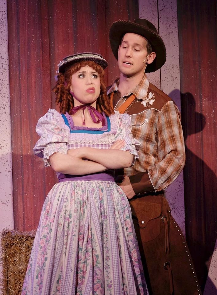 The ensemble is so wonderful under Mojica's slick hand. O'Donnell and Everman bring a wholesome, fresh quality to Laurey and Curly. O'Donnell has an especially beautiful voice. Huse is just sensational as Jud Fry giving him an inner psychotic turmoil that seethes. His performance stands out, reminding one of the seedy intensity of the original Rod Steiger of the 50s film. Blair's Ado Annie is deliciously perky and fun and Koslow's Parker, an imperfect, rather goofy but thoroughly congenial suitor. Neydavoud makes Ali Hakem delightfully scheming and LaValley is delectably on target as righteous Aunt Eller. RC Sands is all feisty fun as stubborn Andrew Carnes, Ado Annie's grunting Pa. Kudos to the other members of the large dancing/singing ensemble. Nice work from everyone!