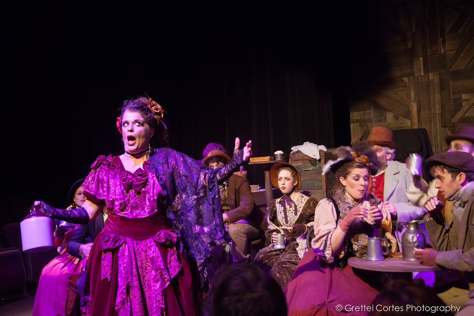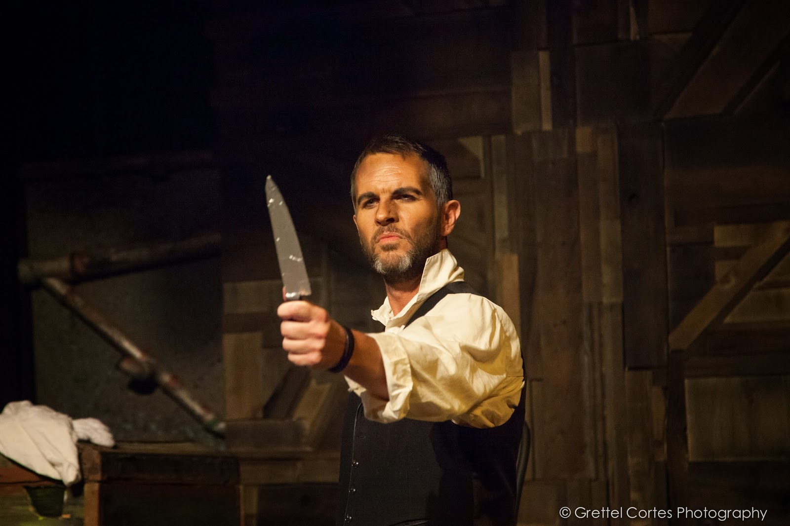 In the supporting cast Craig McEldowney as Beadle Bamford does not miss a beat, nor does Mark Rohner as Pirelli/Fog. Chuck McCollum brings deep-seated lasciviousness to the role of Judge Turpin. All are superb under Towers-Rowles' steady control. The set design by Erik Austin is simple but wonderfully functional and Michael Mukllen's costumes fit the bill. Brisk choreography is by Samantha Marie, who, like Towers-Rowles must be credited for making it all work so well on such a tiny stage. One nice element in this production is that audience is at arm's reach and allows for an intimacy with the story and characters that the larger space does not permit.