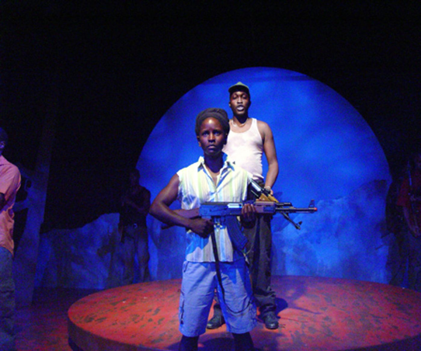 stooped), Kem Saunders (Victor) and Nana Kagga-Hill (Mercy)