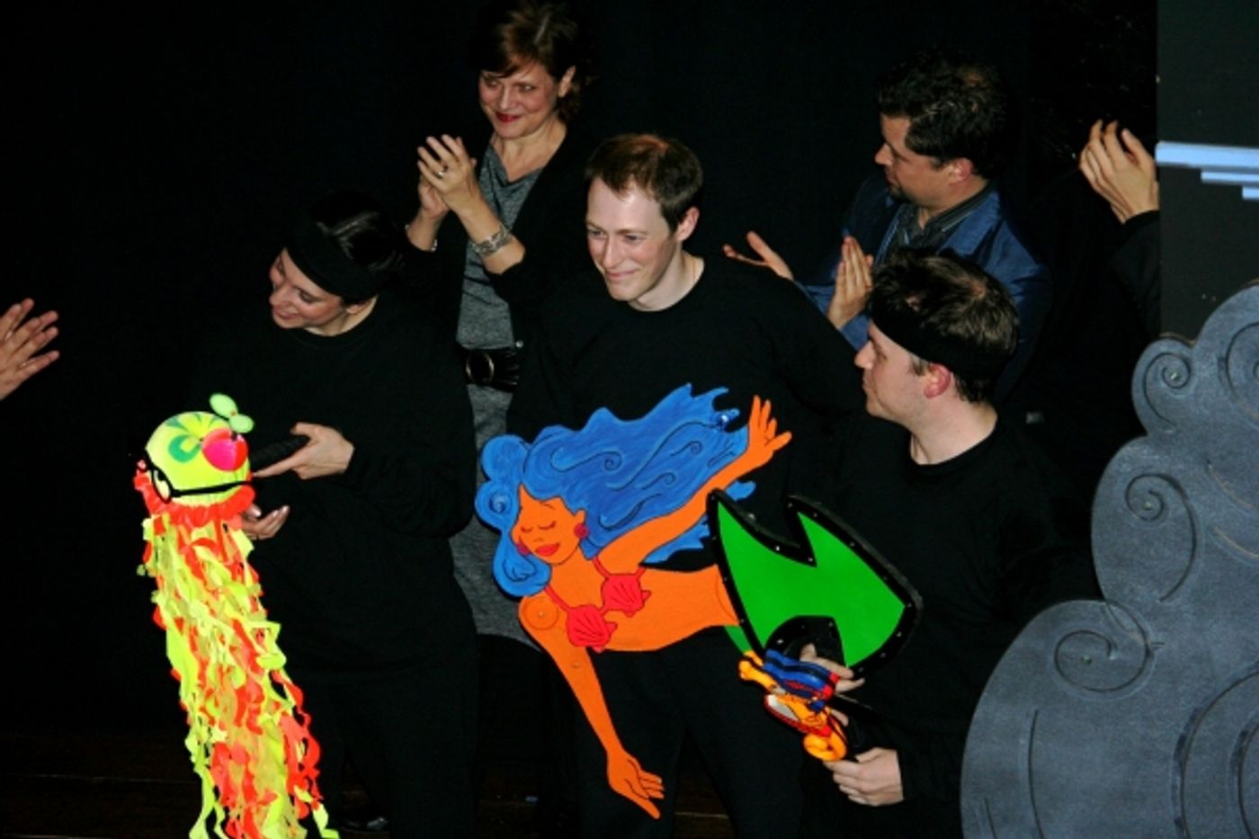 Veteran director and choreographer, Donna Drake, directs the cast of puppeteers who blend themselves seamlessly into the black light ocean floor, setting the stage afloat. The production features: a lively original score with music and lyrics by composer William Wade, adorable characters that light up the stage with their effervescent color and personalities designed and built by the innovative artists at The Puppet Kitchen in New York City, and brilliantly colored sets that create the framework for this magical undersea journey designed by set designer Robert Kovach.