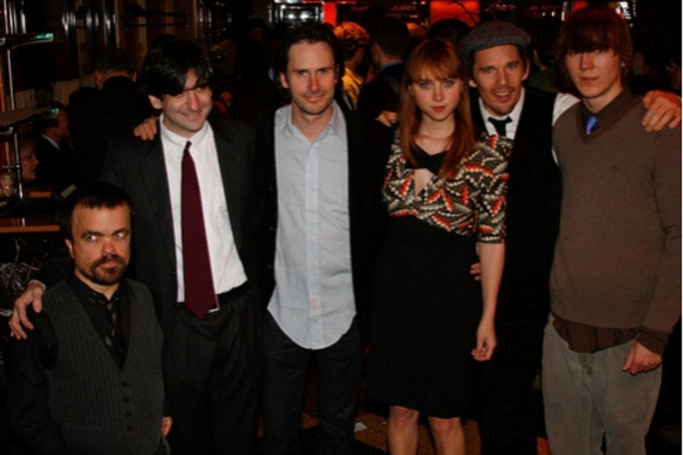 l-r: Peter Dinklage, Jonathan Marc Sherman, Josh Hamilton, Zoe Kazan, Ethan Hawke and Paul Dano
