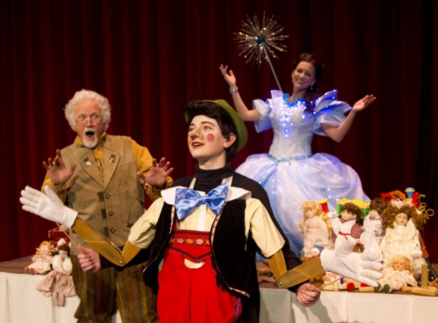 PHOTO CREDITS: Robert Oldroyd is Pinocchio; Jim Murphy is Geppetto; and Rebekah Osmond is the Blue Fairy. All photos by Mark A. Philbrick.