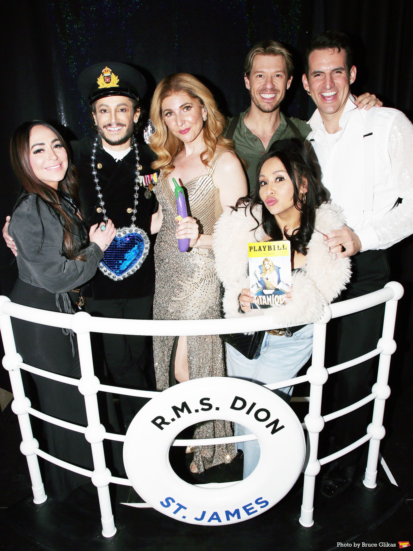 صعد ضيفان مميزان على متن سفينة الأحلام، عندما زارت نيكول "سنكي" بوليزي وأنجلينا بيفارنيك من جيرسي شور طاقم عرض تيانيك على برودواي! شاهد صورة لسنكي وأنجلينا مع فرانكي غراندي، مارلا مينديل، كوستانتين روسولي، نيكول "سنكي" بوليزي، جون ريدل هنا!